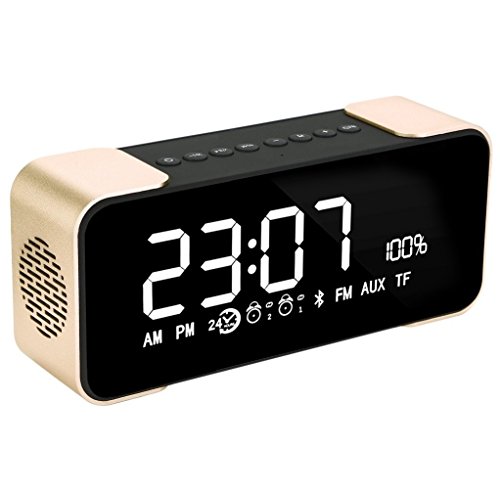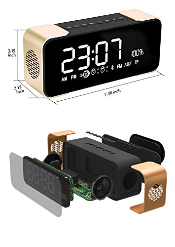 BOXAN Portable Wireless Bluetooth Stereo Speaker with LED Display, FM Radio, Dual Speakers with Amplifier, Support Micro TF Card/AUX 8 Hour Play for iPhone/iPad/iPod/Android Phone and Tablets- Gold