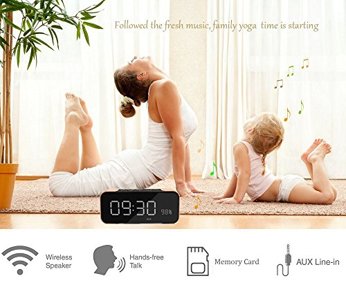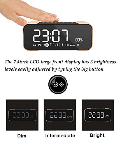 ALL IN ON DESIGN - 7.4 inch large LED display , built in microphone for hands-free phone calls, dual alarm clock, FM radio. 4 brightness settings of LED dimming (high, medium, low, off), to adjust the display to fit your personal preference during the day or at night