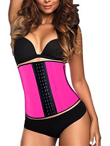 -. Feature : 1.Material: 90% polyester, Spandex 10% Core: Latex 100%. / 2.Three Useful Hooks and these 3 columns hook-and-eye closure classic design, allow you to adjust size as it necessary. / 3.Our waist shaper corset is come with 9 pcs spiral steel bones, it will more stiffness and keep you in a better shape. / 4.High compression. It helps to reduce 4-5 inches in waist when you wear it.Select the right size you want with the size map. / 5.Perfect for taking exercise,yoga,gym,wedding,birthday,party,expecially for the POSTPARTUM REPAIR!