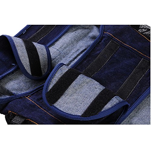 -. Feature : Made of high quality canvas/denim,very cool designs for your pet. / Combine with a big pocket on the back,can hold pet supplies,like snack,toy,etc. / Velcro design,easy to take on/off.Keep your dog stylish, cool, clean and gentle. / It can make your pet look more fashionable and attractive. / Adjustable size,please choose right size according to our size chart.
