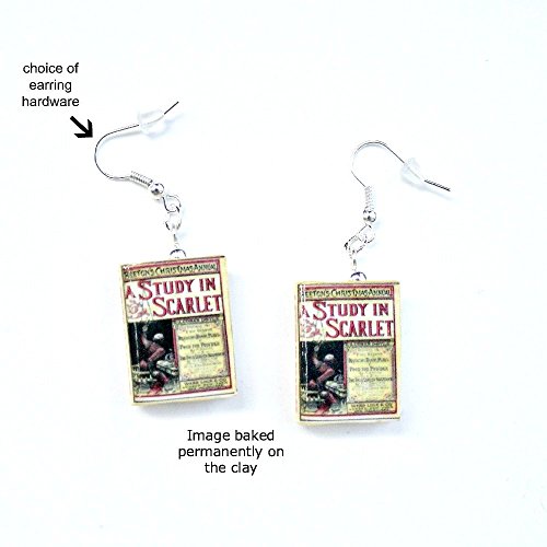 -. Title : Sherlock Holmes A Study in Scarlet Polymer Clay Mini Book Earrings by Book Beads Choose Your Earring Hardware