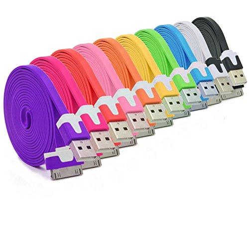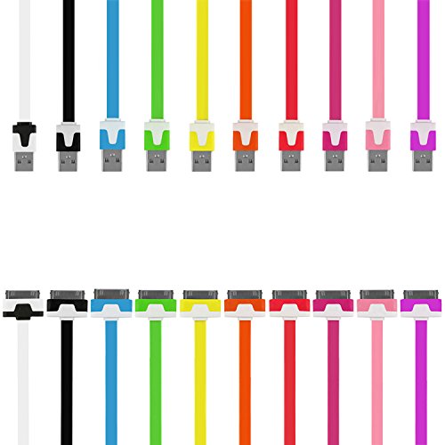 Flat Noodle charger cable For iPhone 3GS 4 4S iPod Touch