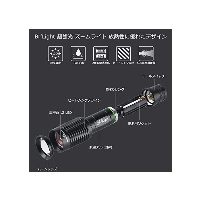 BrLight 미CREE사제초 고휘도LED사용 CREE-L2탑재 방열성 이 뛰어난 디자인 초강광줌 라이트