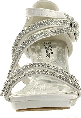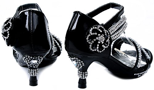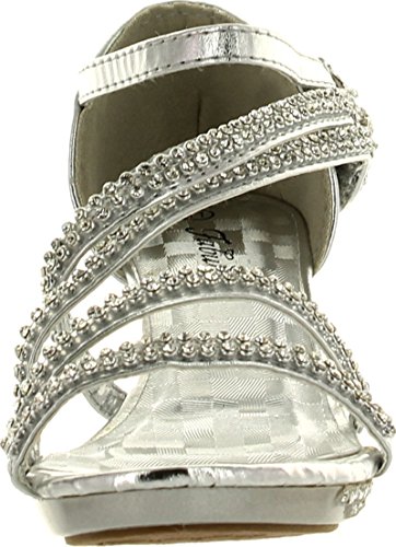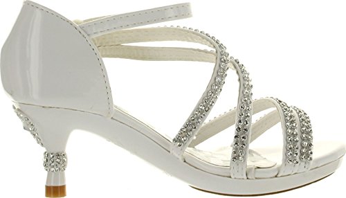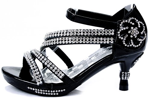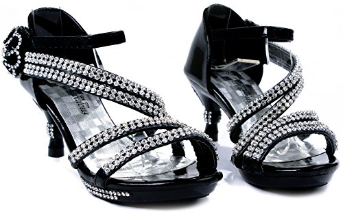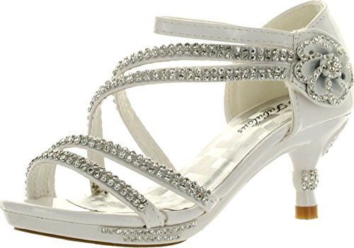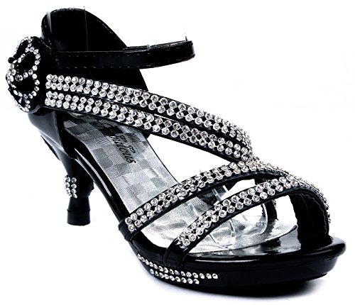 - Feature : Fit: For little girls / True to size / Features: Open toe, light weight, low heel, with dazzling rhinestone ankle strap and flower accents at side. A hook and loop closure and a slightly padded sole make for an easy peasy fit and comfort. / Heel 1.75", Platform 0.5" (Measurements may vary slightly) / Please note the fit and the color may vary slightly according to personal references and monitor settings.