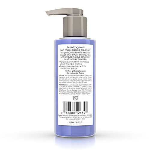 Clean and refresh skin while removing makeup with Neutrogena One Step Gentle Cleanser. This foaming liquid cleanser saves you time by combining the cleansing power of a face wash with the effectiveness of a makeup remover to thoroughly remove dirt, oil, and other impurities from your skin in one simple step. Its rich, silky formula cleanses without stripping moisture and then rinses completely, so skin is left soft and smooth. The cleanser is dermatologist-tested and hypoallergenic.Feature