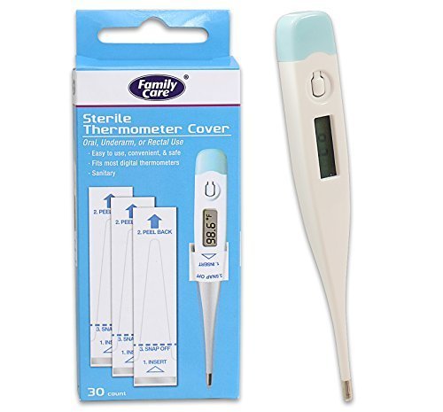 -. Brand : Family Care -. EAN : 0780707005736 -. Feature : Easy to use, convenient and safe / Fits most digital thermometers / Oral, underarm or rectal use / Digital thermometer not included -. Label : United Exchange Corp. -. Manufacturer : United Exchange Corp. -. MPN : 00573 -. PackageQuantity : 1 -. PartNumber : 00573 -. ProductGroup : Health and Beauty -. ProductTypeName : PERSONAL_CARE_APPLIANCE -. Publisher : United Exchange Corp. -. Studio : United Exchange Corp. -. Title : Family Care Sterile Thermometer Cover -. UPC : 780707005736