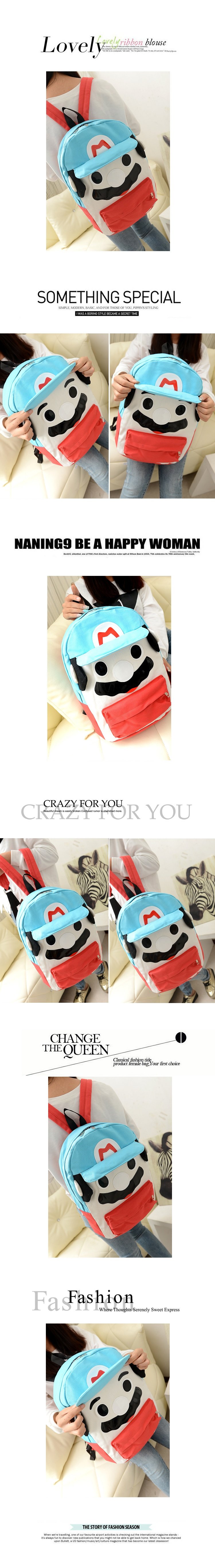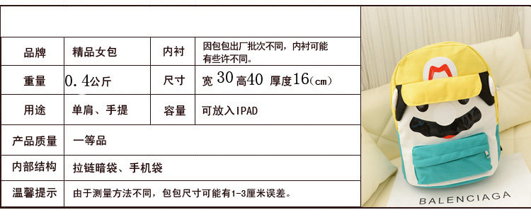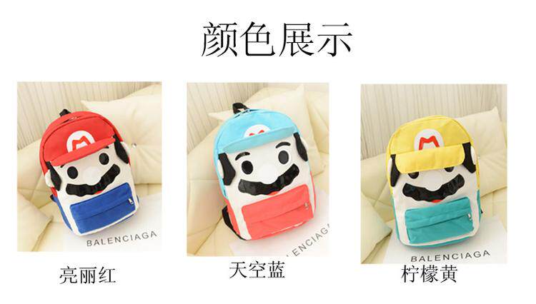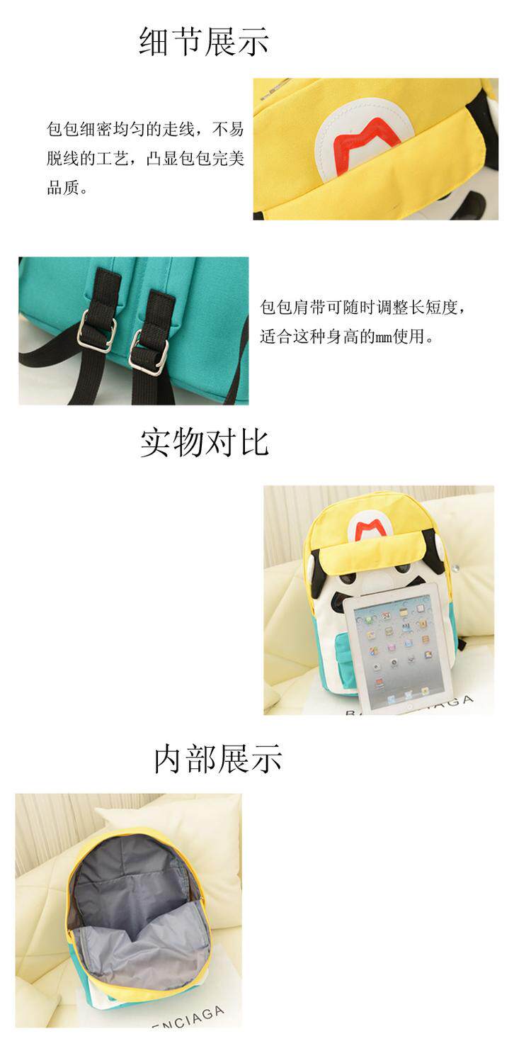 韩版可爱卡通马里奥帆布休闲双肩包背包中学生书包潮女包包