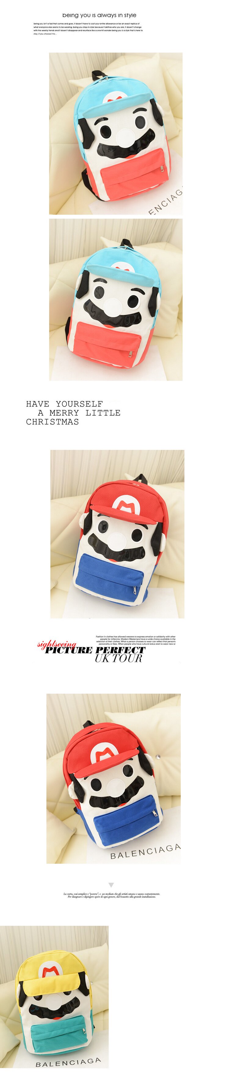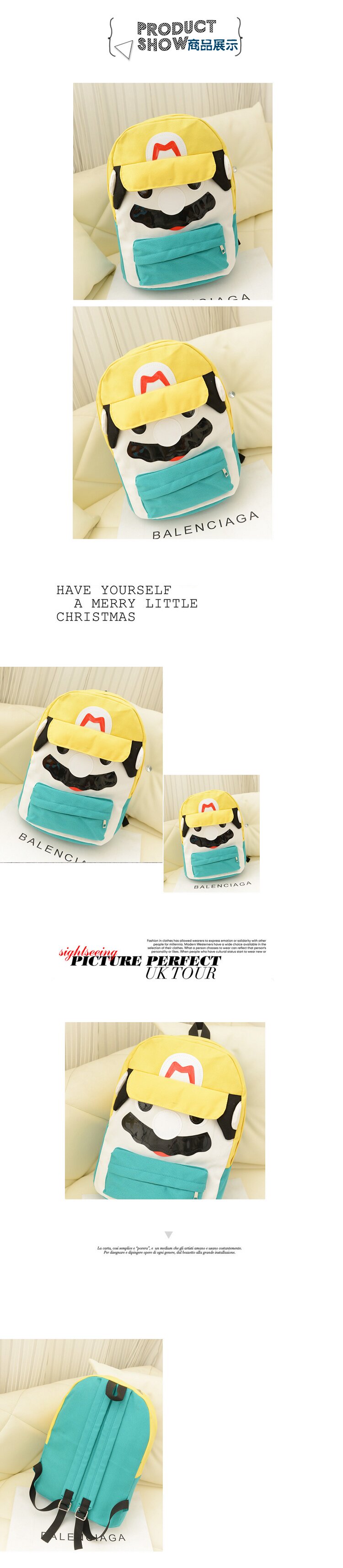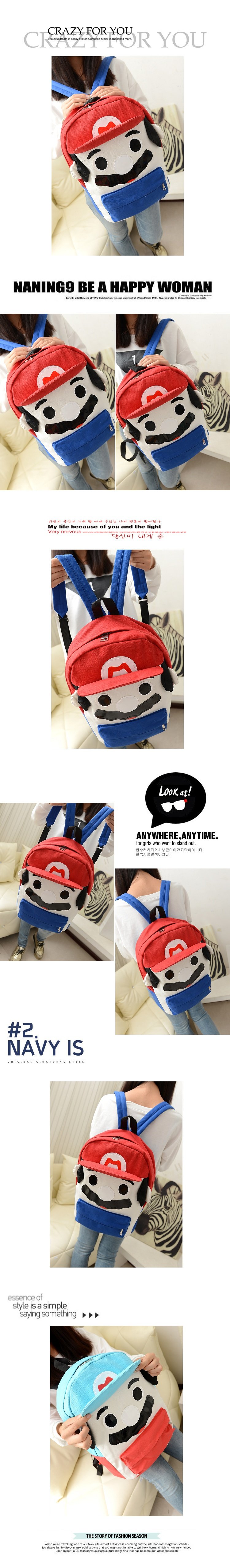 韩版可爱卡通马里奥帆布休闲双肩包背包中学生书包潮女包包