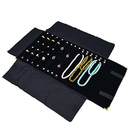 Binding : Kitchen Product Description Size: open 55cm*30cm closed 30c*12cmm Color: Black Velvet.Gray Velvet N.W: 0.26kgs Usage:Ring,Earring,Necklace,suite for Lady's Personal Jewelry Storage and Travel Bag Necklace Ring Earring Storage Case Jewelry Roll Bag