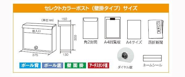 | 門扉や壁に掛けるタイプのおしゃれカラーポスト。A4用封筒やA4回覧板の大型郵便物がらくらく投函。ダイヤル錠付で防犯性にも優れています。 |