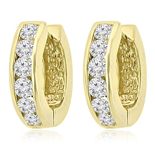 -. Title : 1.20 ct Ladies Round Cut Diamond Hoop Hie Earrings In 14 kt Yellow Gold