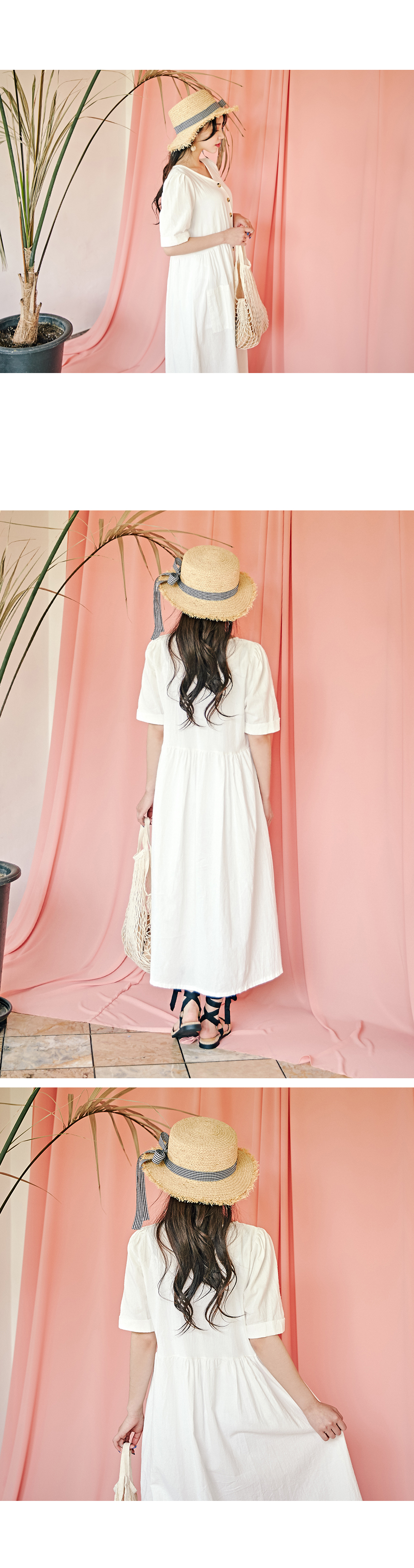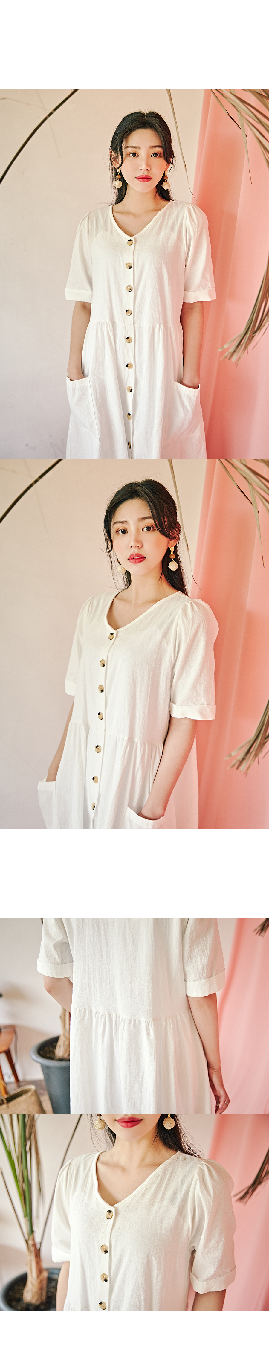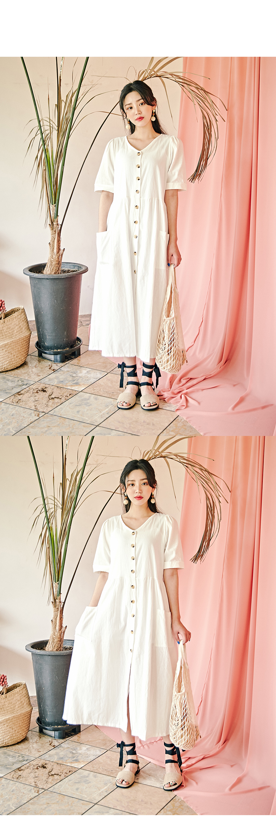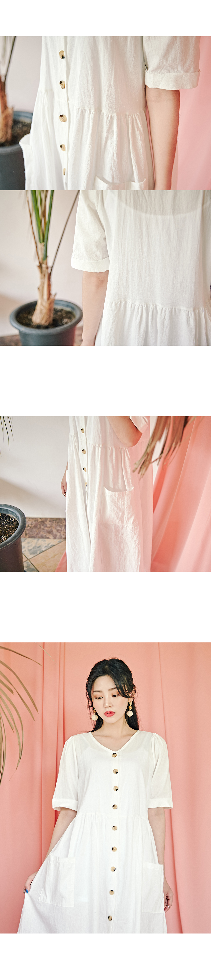 MD COMMENT페미닌하면서도 소녀감성을 더해주는롱원피스 입니다 전체적으로 여유있는 실루엣으로 부담없이 편안하게 즐기실 수 있어요 V네크라인으로 목선을 여리여리하게 연출을해주며 종아리를 덮는 길이로 바디라인을 커버해주구요단추디테일로 쉽게 착용하실 수 있는 아이템이에요 !