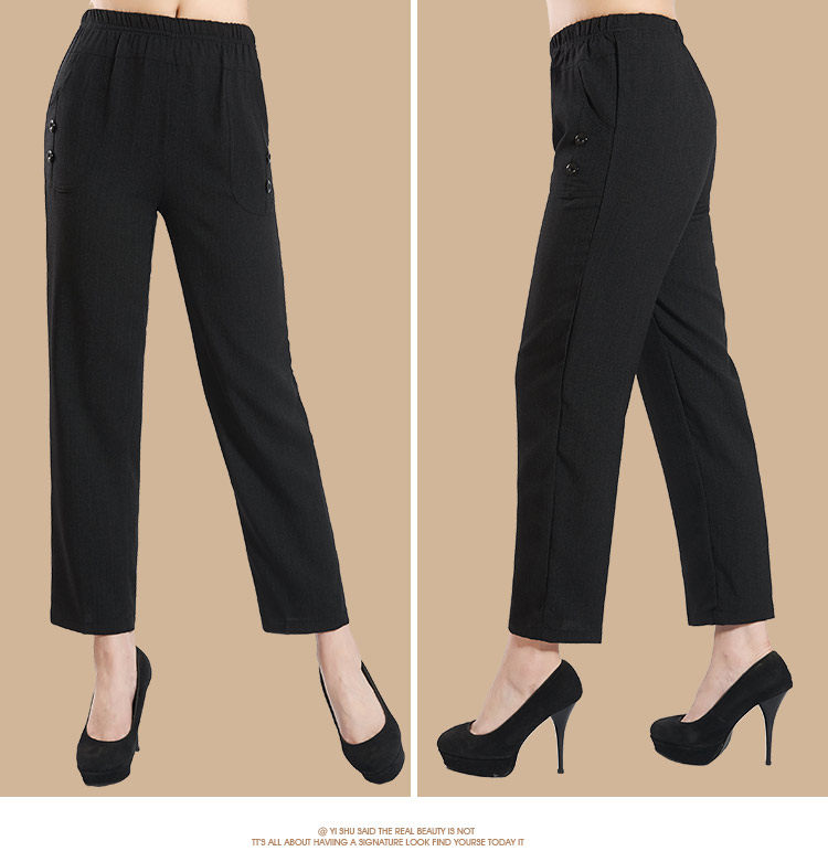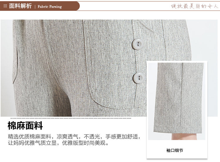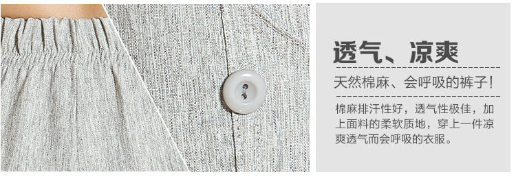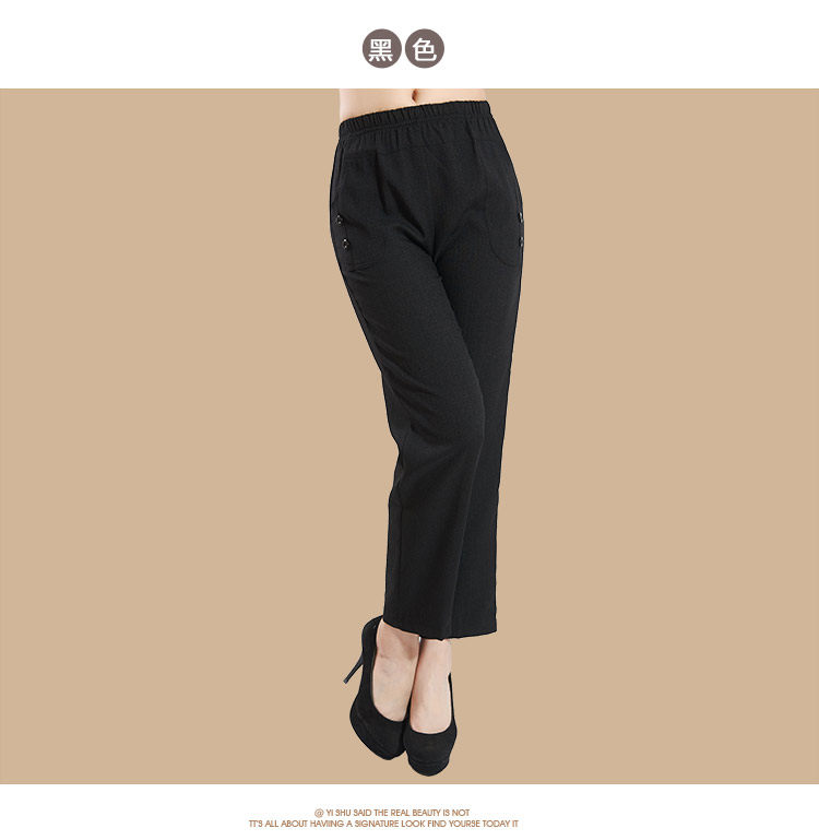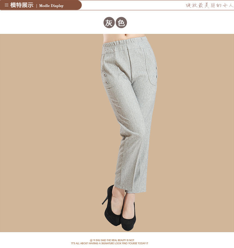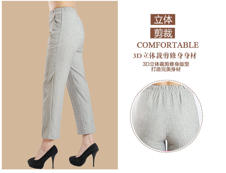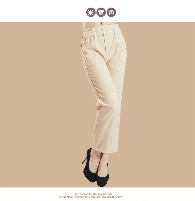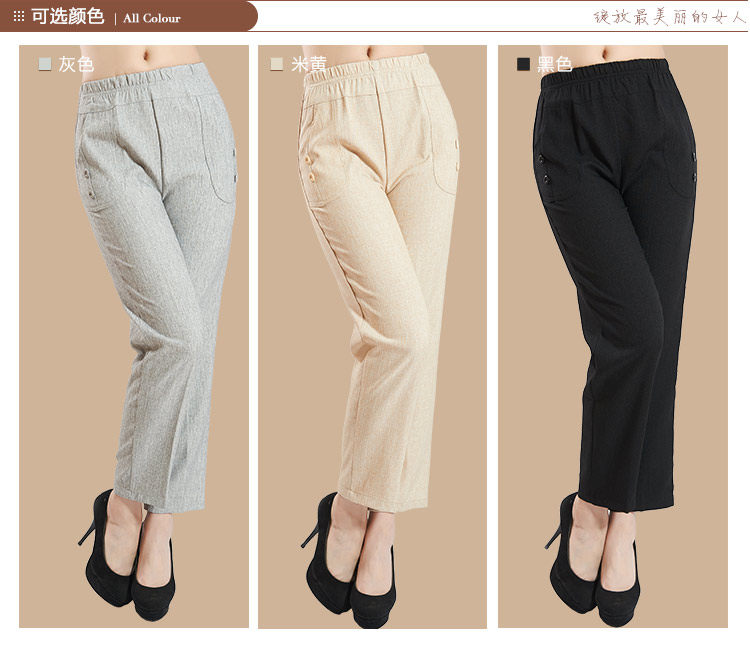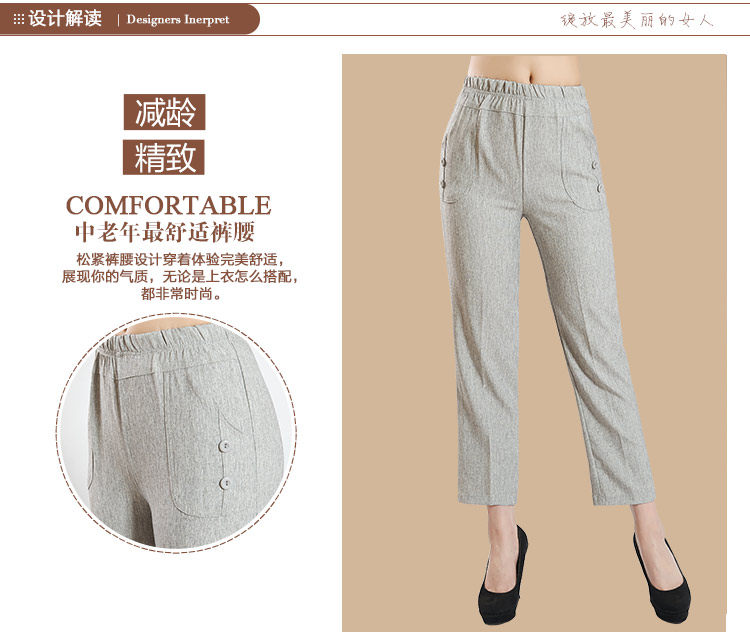 新款中老年女装夏装亚麻女裤 大码妈妈装直筒休闲九分裤松紧裤子