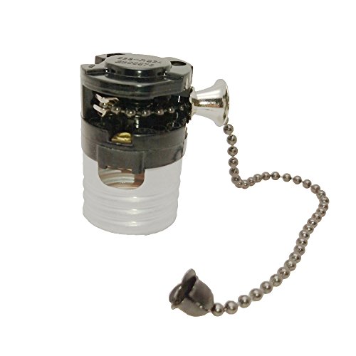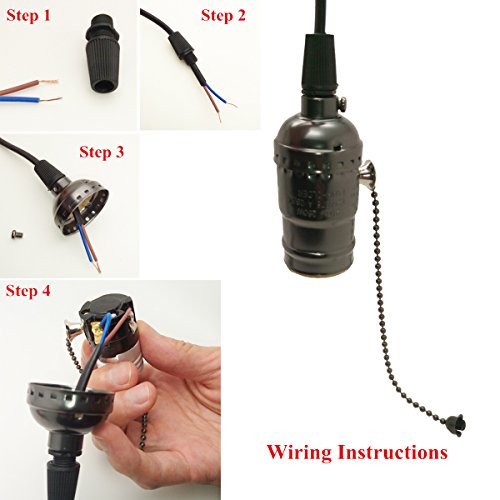 LJY UL-Listed 3-Pack E26/E27 Edison Socket Medium Screw Base Retro Pendant Lamp Holder Aluminum Zipper Style Industrial Light Socket with Pull Chain On/Off Switch (Black)