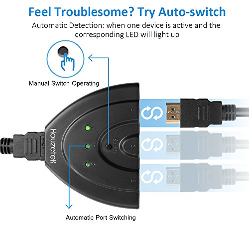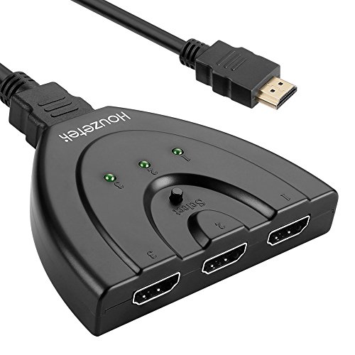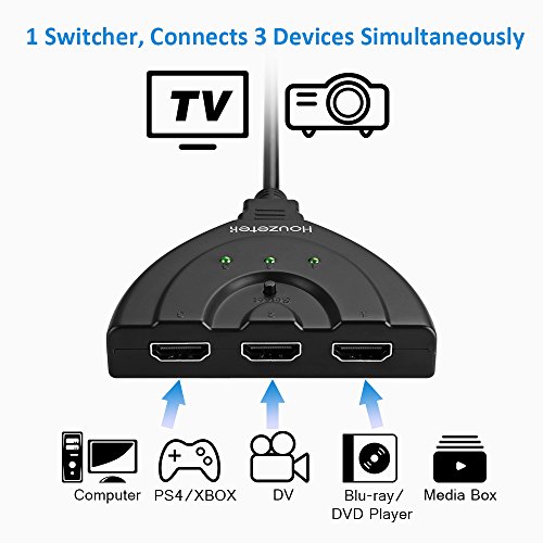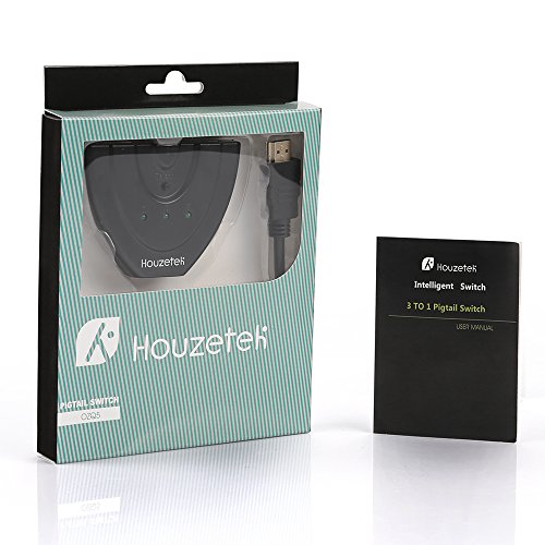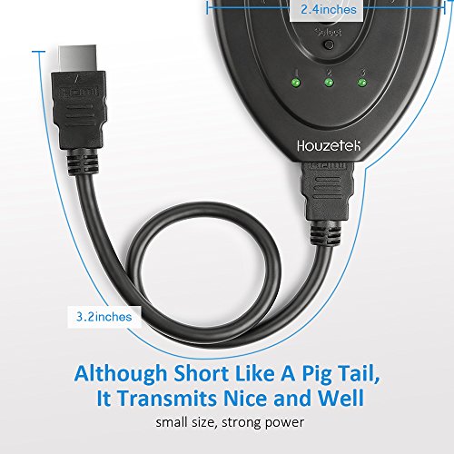 HDMI Switch, Houzetek 3-Port HDMI Switch with Pigtail Cable, 4K HDMI Switch 3x1 Switch Splitter with Pigtail Cable Supports 1080P&3D, HD Audio