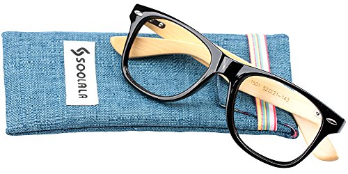 -. Title : SOOLALA Retro Style Wood Bamboo Arm Clear Lens Eyeglasses Customized Reading Glasses