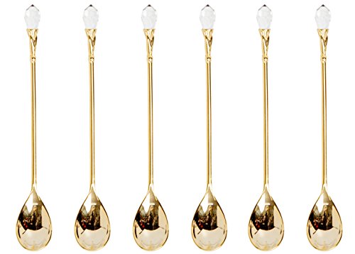 Product Description Ever wish to add a bit of grandeur to your dining experience? Set your table in the most stunning of ways. These gold-plated serving spoons bring elegance and class to whatever you're dishing up. Crystal tips at each end add a final glimmering touch. These Gold Plated Spoons are great for holiday meals and special occasions. Beyond home use, these are an amazing addition for caterers, hotels, buffets and more. Complete the look with a matching set of golden serving forks. 0