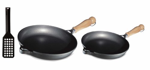 Frying has never been this enjoyable yet efficient with the Berndes Tradition 2-piece frying pan and spatula. The 10-inch and 11.5 inch frying pans are made in Germany and ergonomically designed. They are made from 6mm of reinforced aluminum base thickness, and vacuum cast aluminum body is energy efficient and will not warp. This fine cookware also has 3-layers of non-stick coating and has no PFOA. The black spatula has holes ideal for mixing up a roux and is long and flexible too. Whether it is just searing vegetables or frying meats, this essential frying pan set is definitely a nice addition to your kitchenware pieces.