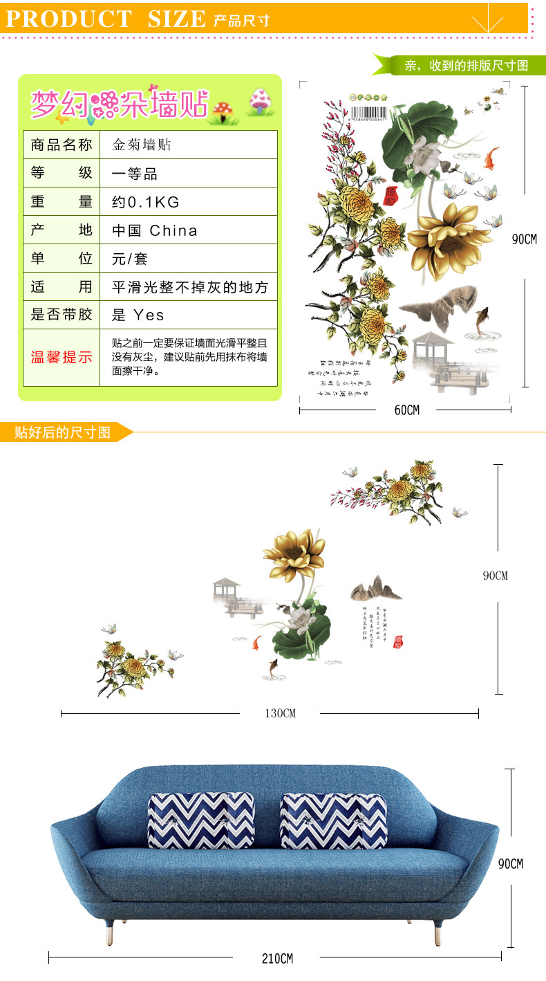 古典花墙贴 家居装饰墙花 卧室客厅沙发电视背景墙贴花 贴纸贴画
