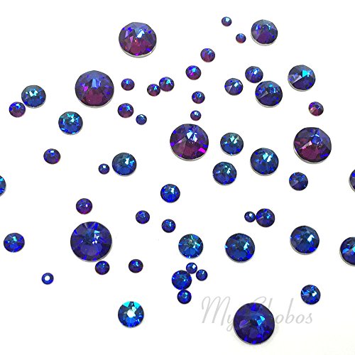 CRYSTAL MERIDIAN BLUE (001 MBL) 144 pcs Swarovski 2058/2088 Crystal Flatbacks rhinestones nail art mixed with Sizes ss5, ss7, ss9, ss12, ss16, ss20, ss30