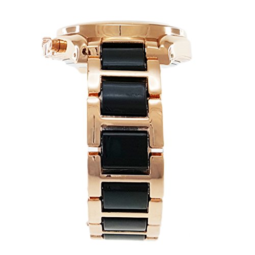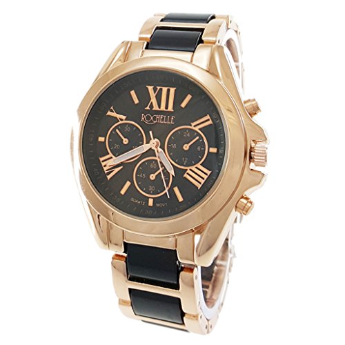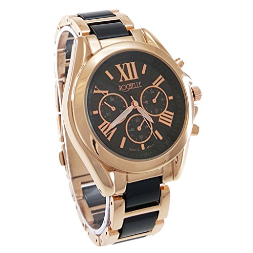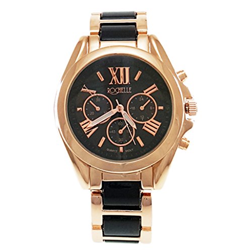 - Rose Gold Case, Black Dial, three chrono, two-tone, quartz, Stainless Steel