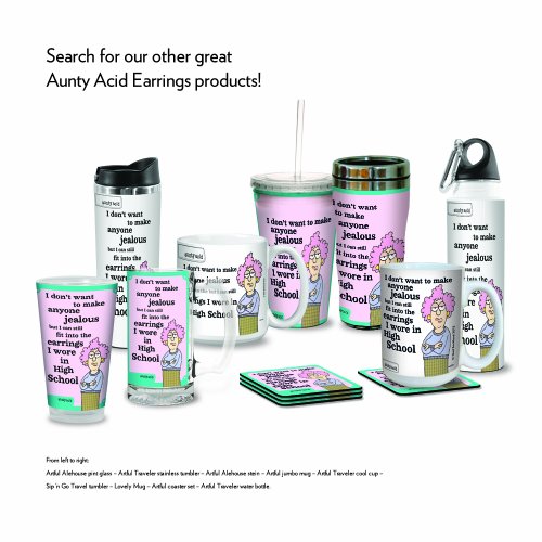 Tree-Free Greetings VB47769 Aunty Acid Artful Traveler Stainless Steel Water Bottle, 18-Ounce, Earrings