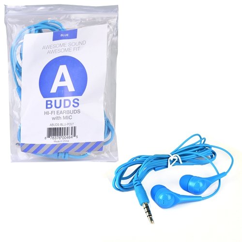 A Buds Hi-Fi Noise-Isolating Stereo Earbuds w/In-Line Microphone (Blue)