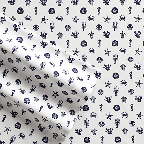 Poppy & Fritz Sea Icons Geometric Cotton Sheet Set, Twin, Blue