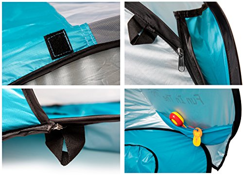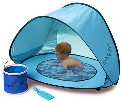 Baby Pop up tent with a detachable mini pool base collapsible water bucket inside beautiful carry bags. Outdoor quality time with the children always includes much effort and time consuming preparations. It feels like we sometimes actually give up on our family experiences because of all the burden involved, which also limits the activity options. Well we've created the perfect, simplest solution especially for that! We offer a safe, free fun environment for your kids wherever you choose to go, so you can go out and have family time of fun in the sun! DESIGN: The baby tent is designed for optimal comfort, lasting quality and ease of use. It's made of 50 UPF UV protection material which will cast a blocking shade on your baby, while they're is having a blast inside the mini-pool. The baby pool is just the right size - small enough to remove safety concerns but big enough to play in and enjoy some fun water games. A multifunctional bucket is also included. It's made of durable, sturdy and water-resistant material, which will help fill up the baby pool easily and quick. It can also be used for any other water activity that you can possibly think of! ZERO ASSEMBLY - The tent instantly pops open to set itself up and easily folds down into the beautiful carry bags in a matter seconds. Weighing less than 3 pounds the complete set is extremely compact and portable making it easy to carry and store. It simplifies the entire process and relieves all the annoying tasks involved in a day outdoors with the kids so you're able to bring it along wherever you go and just enjoy the experience. CONTENT 1x Pop Up Baby Pool Tent Carry Bag 1x Foldable Water Bucket Carry Bag 4x Tent Pegs 1x instruction Manual This set is great for toddlers and kids under the age of 3 years and is absolutely the perfect gift for your family and loved ones! 0 |