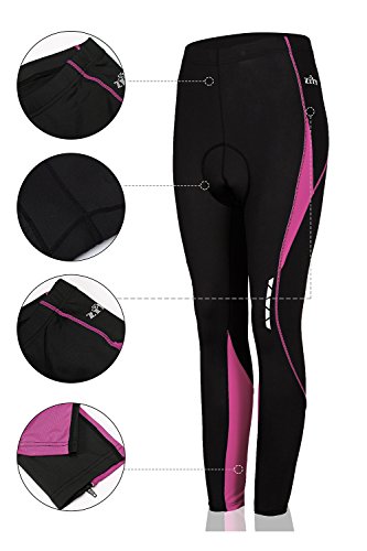 Bicycle Pants Padded for Woman Long Bike Tight Compression Pants 3D with Hidden Drawstring Rose Red XL