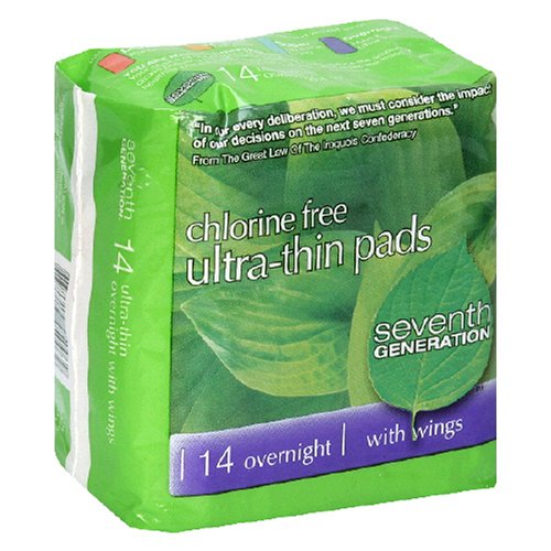 Seventh Generation Ultra-Thin Pads, Overnight, with Wings, 14 pads (Pack of 6)