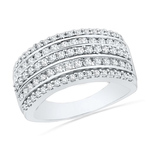 -. Title : 10KT White Gold Round Diamond Fashion Band Ring (1 cttw)