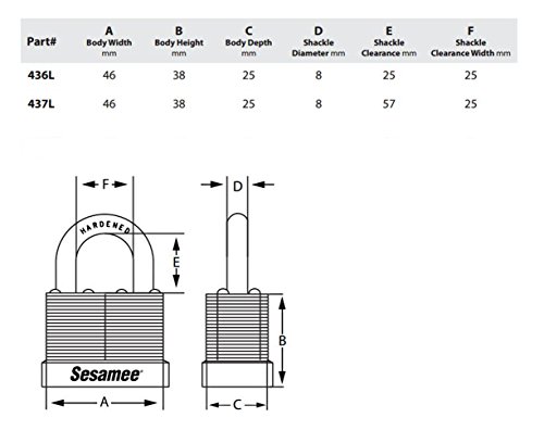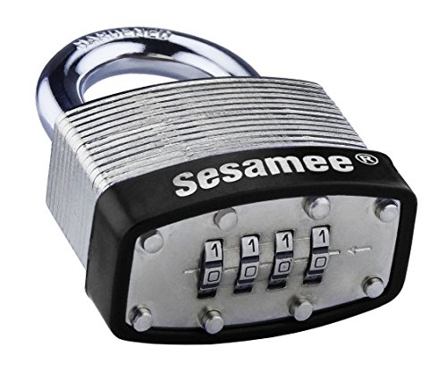 The Sesamee laminated combination padlock is made of heavy duty laminated steel and has a hardened steel shackle which will resist slashing and cutting