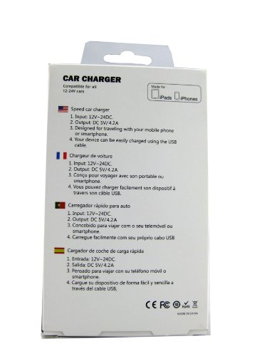 JMD Dual USB 4.2A 20W (super fast, biggest output) Car Charger - Able to charge up to two iPad's or tablets at once! Can charge any two devices at once - iPhone 4 / 5 / 5c / 5s , Samsung Galaxy, HTC, iPad, iPod touch etc.