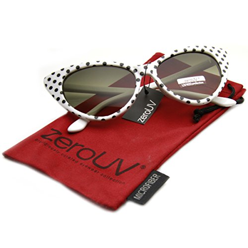 A distinct mod version of 50s-inspired cat eye sunglasses with high pointed corners and adorable polka dots. You'll find they can work with many outfits, from the very modern to the utterly vintage. Made with an acetate based frame, metal hinges and gradient polycarbonate UV protected lenses.Feature