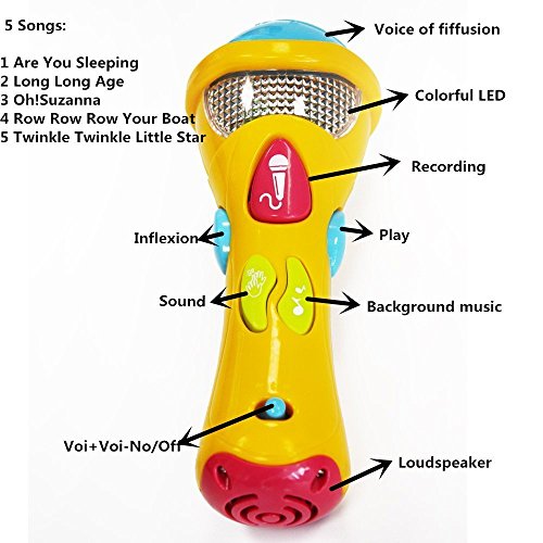 -. Binding : Toy -. Brand : Wishtime -. Color : multicolored -. EAN : 0703194428383 -. Feature : A great Music Microphone Toy for Baby has Sounds and songs recording functional / Baby toy Recording Function:Repeating sound and inflexion speach educational kids wireless microphone / Developing Kids Learing Ability:Early learning center teaches toddlers to sing and learn musical toy / Interactive toy is perfect for infants and toddlers; toy features on/off switch and 2 different volume controls / Singing Microphone Musical toys is a Fun Portable toy with easy grip handle for little hands and the buttons that changes the songs is easy for little ones to turn also. Cute idea for a toy that will be played with for a long time -. IsAdultProduct : 0 -. Label : Juding -. Manufacturer : Juding -. MPN : JL8391 -. PackageQuantity : 1 -. PartNumber : JL8391 -. ProductGroup : Toy -. ProductTypeName : TOYS_AND_GAMES -. Publisher : Juding -. Studio : Juding -. Title : Wishtime Baby Sing & Learn Recording Microphone My Frist Musical Toys (Color May Vary) -. UPC : 703194428383