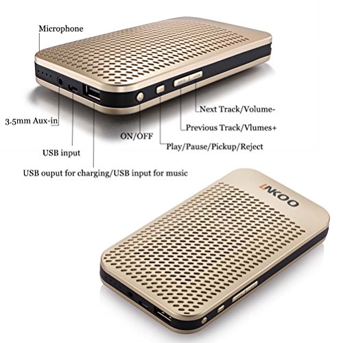 -. Title : LNKOO Bluetooth Portable Speaker With 5000mAh Power Bank Function, Wireless Hands Free Support AUX In TF Card 24hours Playing Time