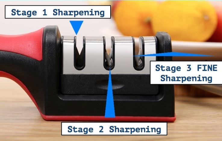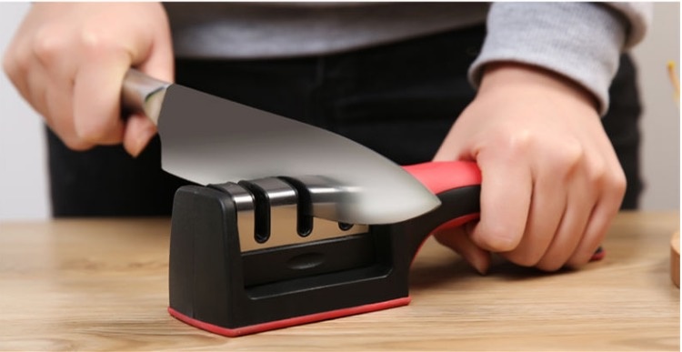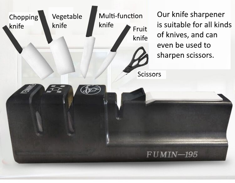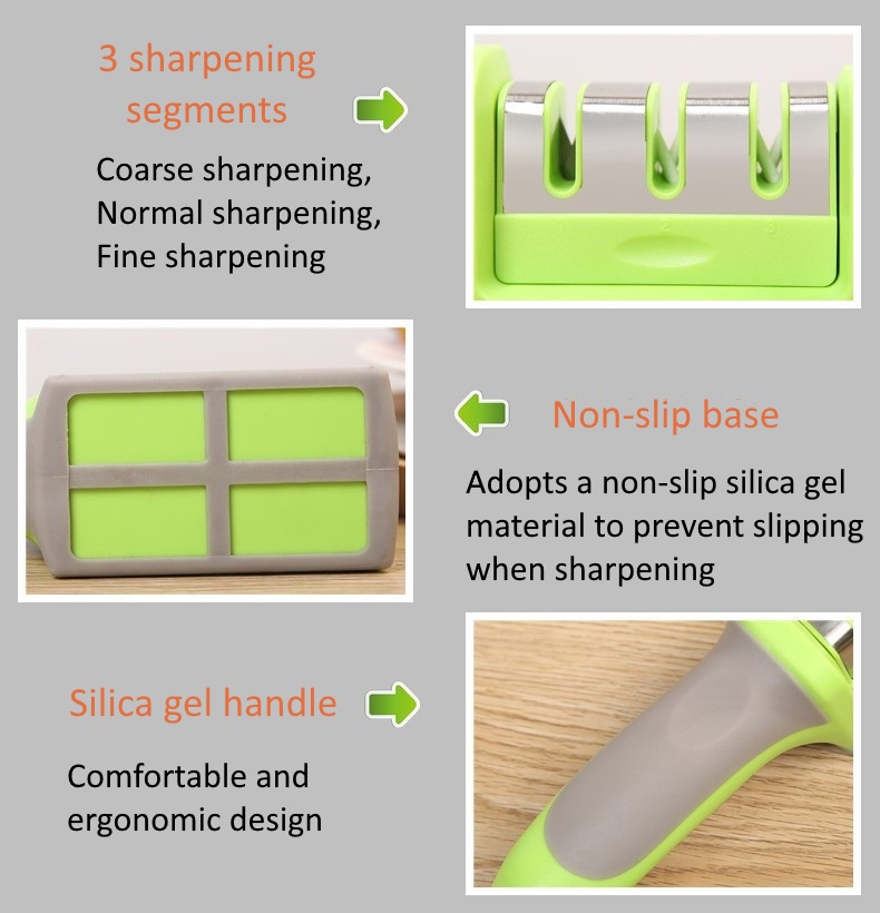 Kitchen Knife Scissors Sharpener  3 Stages Sharpening / Anti-slip Base Grip / Safe Compact Stylish