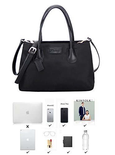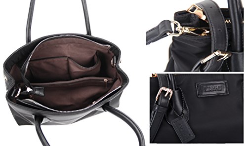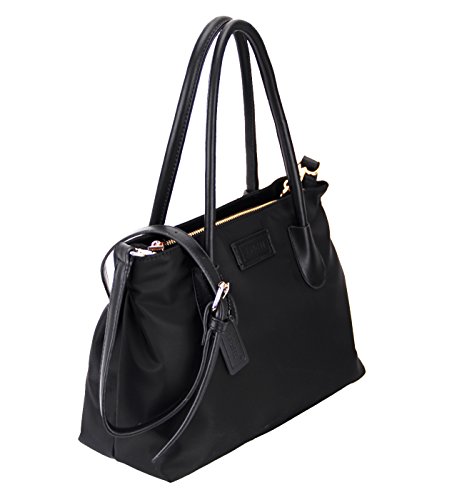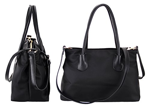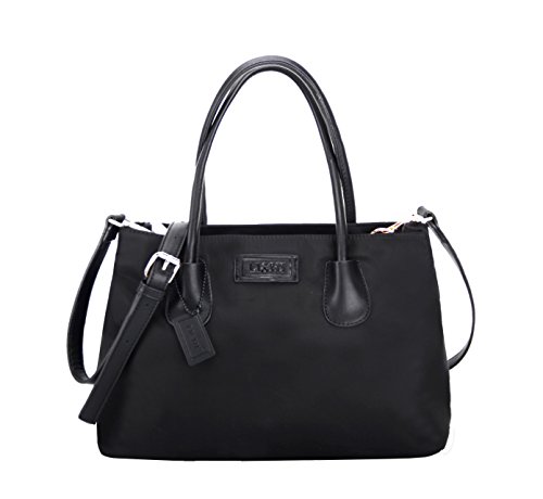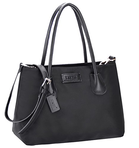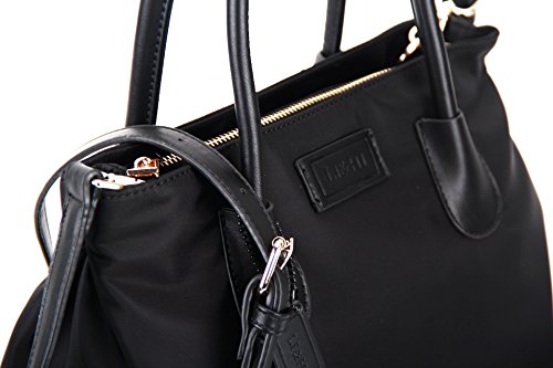 LI&HI Nylon Tote Bag Crossbody Bag Removable Zipper Shoulder Bag Top-Handle Travel Bag Black