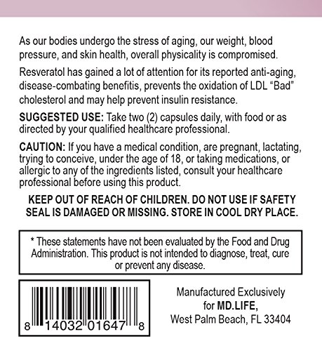 MD LIFETM ANTI-AGING RESVERATROL WITH RED VITIS VINIFERA is an excellent supplement for athletes, those with physically-demanding jobs, or anyone looking to improve the look, feel, and overall health of their skin.