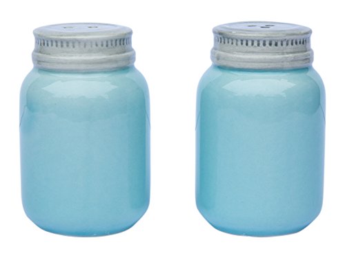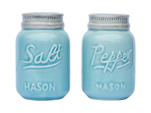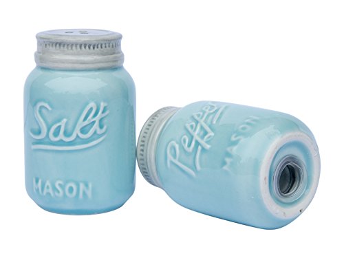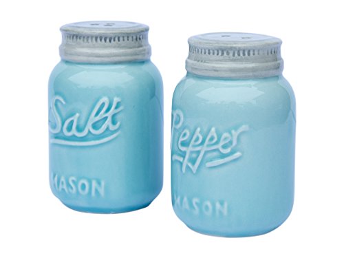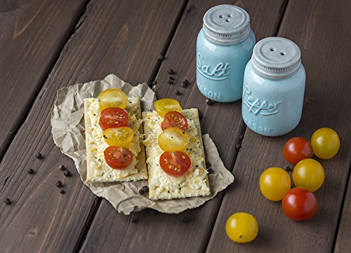 Vintage Mason Jar Salt & Pepper Shakers by Comfify - Adorable Decorative Mason Jar DÃcor for Vintage, Rustic, Shabby Chic - Sturdy Ceramic in Aqua Blue - 3.5 oz. Cap.