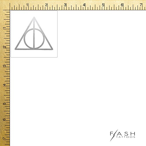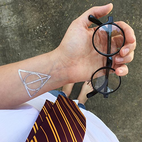 Deathly Hallows set of 25 premium waterproof metallic silver temporary jewelry foil Flash Tattoos - Party Favors, Party Supplies, Halloween, Festival