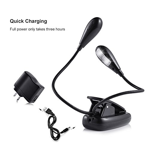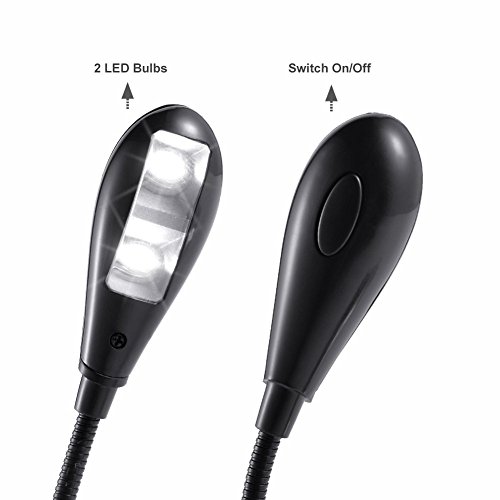 FLEXIBLE ARMS - 2 Gooseneck arms let you position the clip on reading light for best viewing without disturbing others nearby