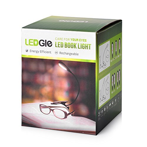 Ledgle LED Book Light Rechargeable Extra-Bright 4 LEDs, Easy Clip On Reading Light, 5 Brightness Settings, Soft Padded Clamp, USB Cable & CE Certified AC Charger. Perfect for Night Readers