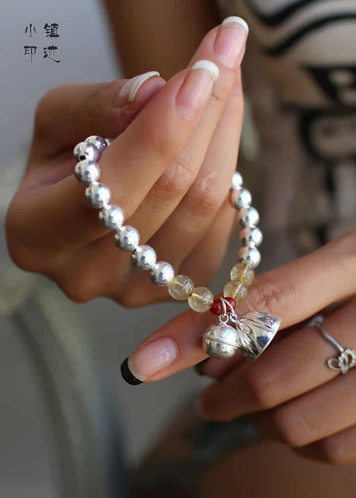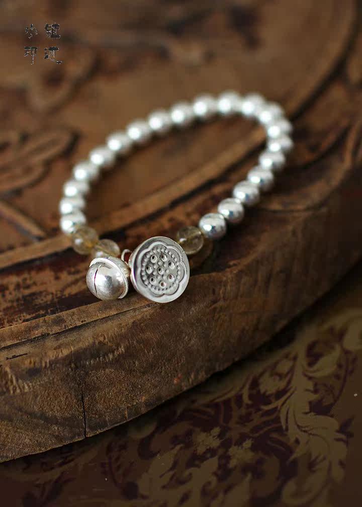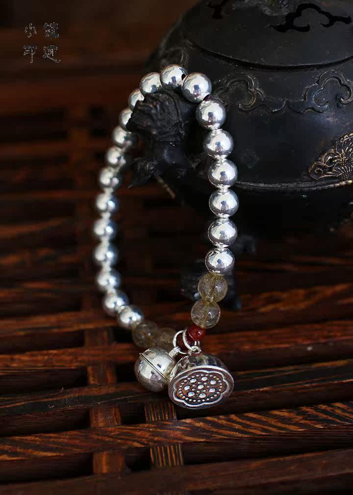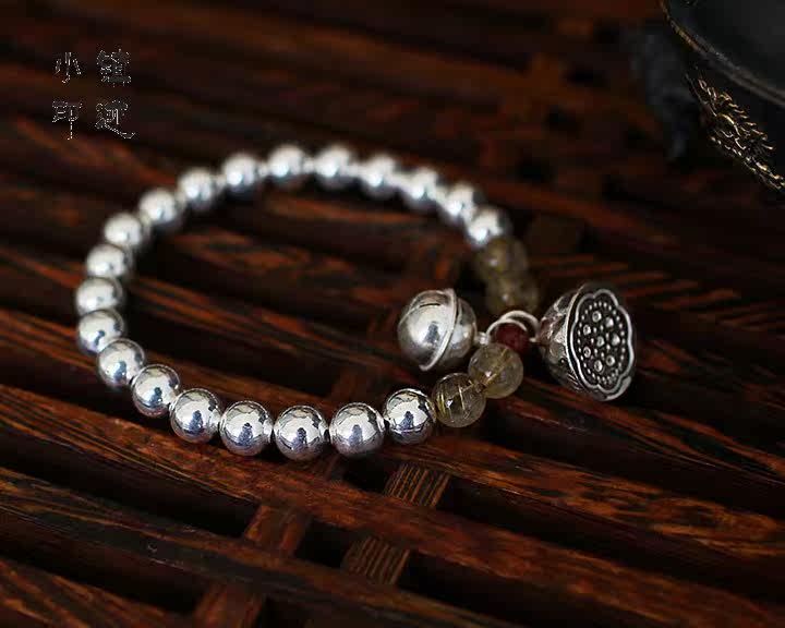| Silver bells bracelet Shower Material: 990 sterling silver lotus, 990 sterling silver bell, 990 sterling silver beads, super natural crystal, garnet beads Specifications: 7mm pure silver beads, 11mm sterling silver bell, 14mm silver lotus Description: Bead section uses 20 990 sterling silver beads, four super natural crystal, two garnet beads made of sterling silver pendant is part of bells and lotus, representing static and dynamic. Bell hand movement at the time, will make a slight soft ring. Whether material or ideas are on a quality, started the effect is quite good, much better than the picture. |