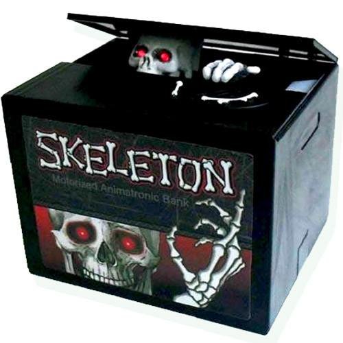 Studio : LEADING EDGE Publisher : LEADING EDGE Binding : Toy Product Description He'll tickle your funny bone when this little animatronic skeleton coin bank snatches your coins to the tune of spooky music. Full color window box with instructions. Perfect for gifts novelty or seasonal. 0