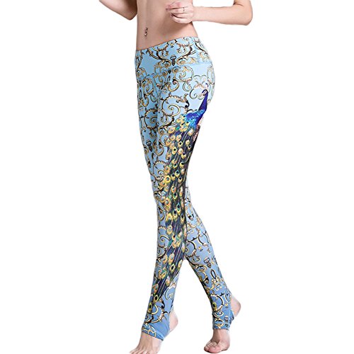 EUFANCE Women Peacock Printed Stretchy Everyday Leggings Dancing Pants Yoga Fitness Seamless Tights Pants