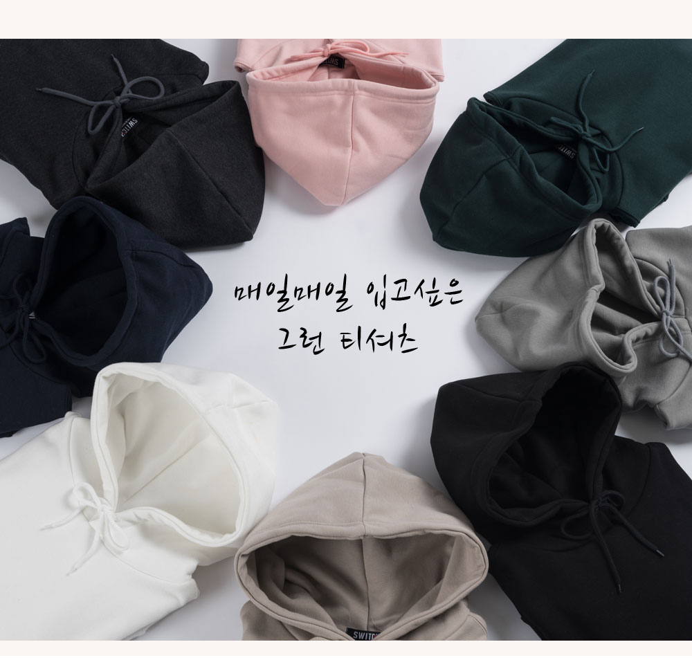 데일리스타일에 꼭 필요한 기본 후드티입니다.