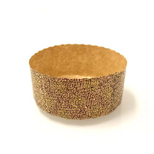 Round Low Paper Panettone Paper Baking Cups Molds 3 1/2'' x 1 5/8'' - Brown and Gold Design - 25 pcs