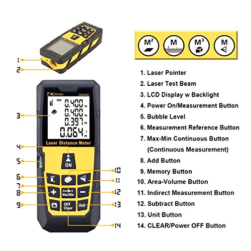 DMiotech Laser Distance Meter 131ft 40m Mini Handheld Digital Laser Distance Measure Rangefinder Measurer Tape Diastimeter with LCD Backlight Yellow